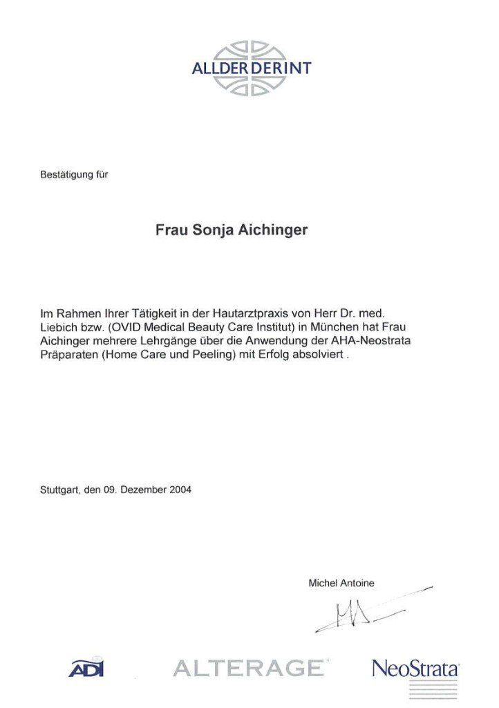 Parallel dazu war ich über 15 Jahre im Dermazent München unter Dr. med. Christoph Liebich tätig. Dort habe ich mein Können in der praktischen Umsetzung apparativer Methoden, der professionellen Pflege von Problemhaut sowie in der Narbenbehandlung und Langzeitbetreuung weiter ausgebaut.
