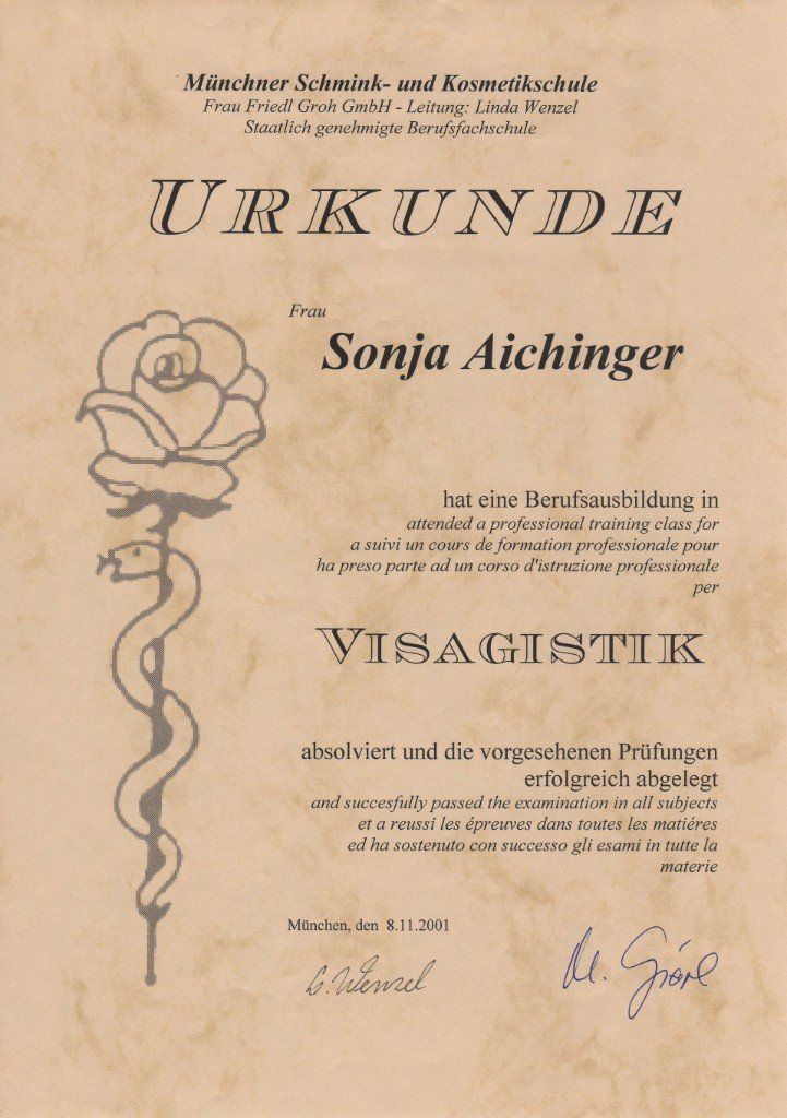 Ich bin Sonja Aichinger, staatlich geprüfte Kosmetikerin mit über 25 Jahren Berufserfahrung – mehr als 15 Jahre davon war ich in dermatologischen Fachpraxen in München tätig.